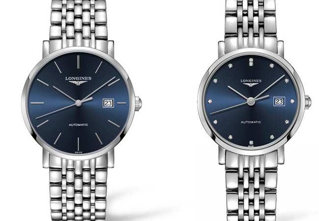 Longines浪琴表Elegant優雅系列之中的每一只時計都秉持Longines浪琴表的品牌傳統與製錶專業,搭載Longines浪琴表的專屬自動上鏈機芯,充分展現出品牌對精緻鐘錶工藝的堅持。Longines浪琴表Elegant優雅系列提供29毫米與39毫米兩款尺寸供男女對錶選擇。面盤上的藍色太陽飾紋面盤備有刻度或鑲鑽時標,配載深藍色鱷魚皮錶帶或不鏽鋼錶鏈。清新的深藍色設計,如同腕上的精緻飾品,舉手投足間流露配戴者的時尚品味,也展現出情人間的美好默契!
