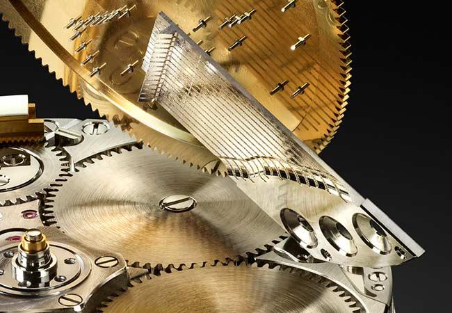 最有趣的是當音樂鬧鈴響起時,面盤會緩緩轉動,轉動的機刻雕花面盤折射出動態的耀眼光芒,此時享受的不只是音樂,還有視覺上的饗宴。面盤的轉動並不只為了好看,而是這樣才能發出音樂旋律。玄機就在面盤的另一側。