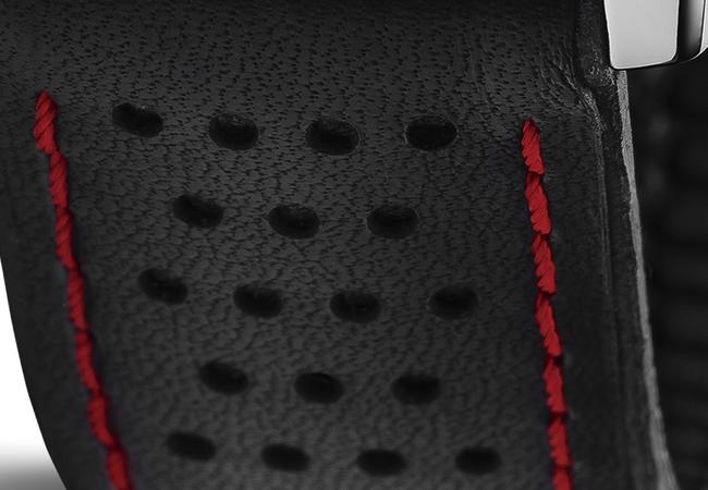 紀念款揉合了歷代Mille Miglia錶款的特徵:它的基本設計來自Mille Miglia Classic,但面盤的魚鱗紋近期則是出現在Mille Miglia 2017 Race Edition上,各部細節都能夠快速地喚起我們對這個系列的記憶,而真正點破主題的紀念字樣則是打在底蓋上頭。
