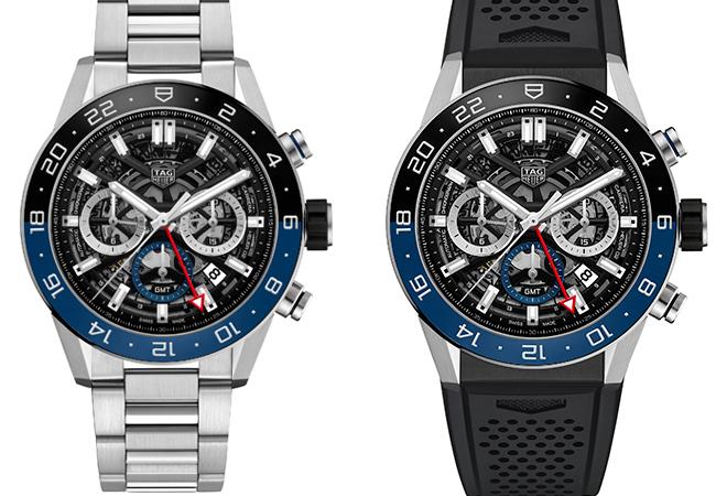 回頭來看今日的TAG Heuer,此次新品首推今年於巴塞爾鐘錶大展發表的Carrera Heuer 02 GMT計時碼錶,這款腕錶乃是為Carrera系列問世55週年的紀念作品,具有GMT兩地時間及全新計時碼錶設計。延續Carrera的DNA及TAG Heuer品牌元素,並回歸1963年3-6-9計時盤配置的原創設計。分鐘和小時計時盤分別設於3時和9時位置,小秒盤位於6時位置,4時30分位置為日期窗,另外新增GMT功能。這是TAG Heuer首次自製機芯家族之中加入這項複雜機制。精鋼鍊帶款建議售價NT$ 198,500,橡膠錶帶款建議售價NT$ 193,500。
