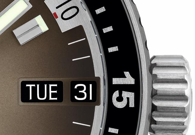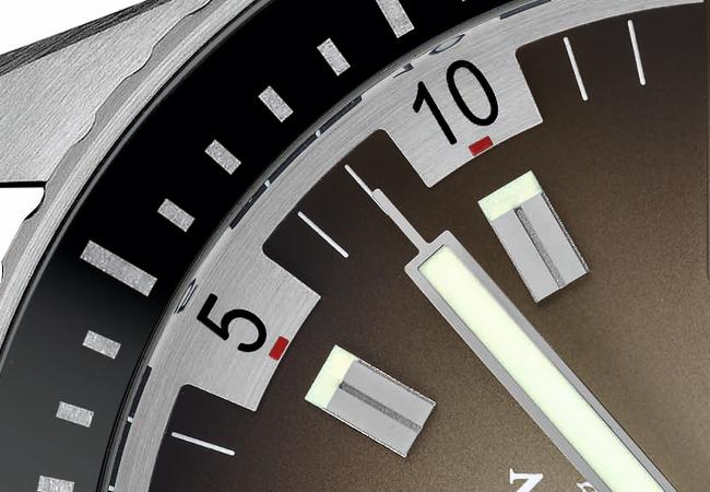 其中最明顯的改變是當年錶款為70年代所流行的鮑魚殼錶身,為了避免潛水時誤觸導致錶圈紀錄走位,因此設計了旋轉內圈,形成外圈為分鐘內圈則為小時時標的雙層錶圈設計。然而重新演繹後,全新的五十噚深潛70年代日期星期腕錶,不採鮑魚殼身,而是延續更有系列特色的圓形錶殼,並且採用旋轉外圈強調潛水錶特色。但依舊保留面盤上雙層時標的佈局,重溫當年情境。面盤從內向外的漸層配色,亦是延續當年錶款特色。復刻而不復古,實是為古典賦予了新靈魂。