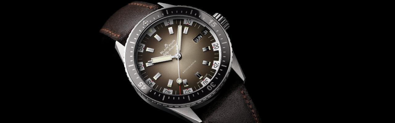 而子系列Bathyscaphe則是在1956年左右發表,將最初41mm的尺寸,稍微下修至38mm左右,以此更符合當時代的美學。這次寶珀以1970年代所推出的五十噚深潛日期星期腕錶為靈感復刻,但寶珀卻不是照章如法炮製,而是擷取當年部分元素,例如內外雙層時標、傳統的星期、日期配置,再將之鞣製為更符合現代的復古味。