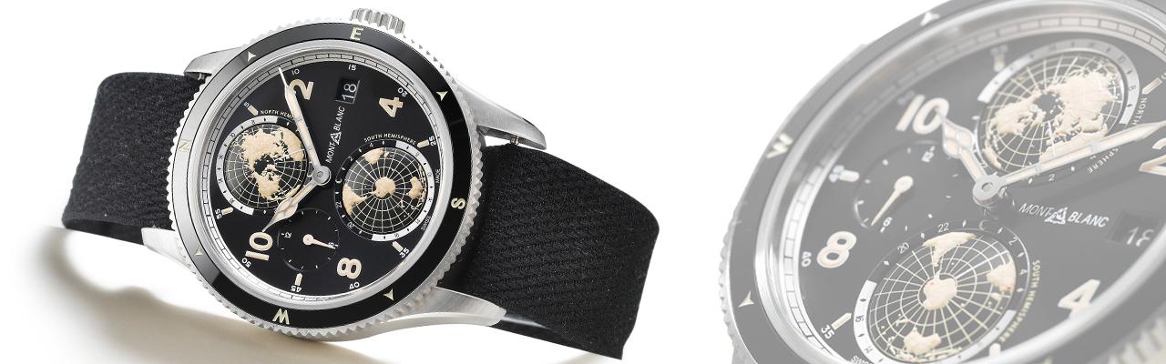 萬寶龍MONTBLANC是這幾年最積極推出世界時區錶款的品牌,原因無他,因為萬寶龍的消費族群,擁有極高比例是商務人士,因此推出操作便利,具獨特風格的世界時區錶款,是萬寶龍的重要任務。在2018年,萬寶龍所發表的新款1858系列世界時間Geosphere腕錶,其設計靈感源於Minerva錶廠在1920和1930年代所推出的知名軍用與山岳探險專用腕錶,也是藉此向Minerva錶廠成立160年的傳承精神致敬。當時所推出的腕錶具有極高的準確度、時間讀取清晰度以及耐用性,可以在極端的環境下使用,所以萬寶龍選擇這些元素,推出源於探險的全新復古腕錶。
