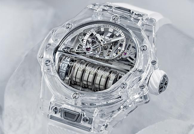 此外,同步推出藍寶石水晶款版本的MP-11。藍寶石水晶的加工,需要專用的鑽頭磨具逐步緩慢地切削拋磨成型。但由於藍寶石水晶的硬度極高,因此不只切削耗時費工,對於工具的損傷也極為耗損,製作成本不菲。宇舶以此做出非傳統形狀的凸面錶殼,更需要特殊的多軸磨具多角進行,稍有不慎,便可能前功盡棄。其複雜度,所需心血,可能不遜於製作機芯。