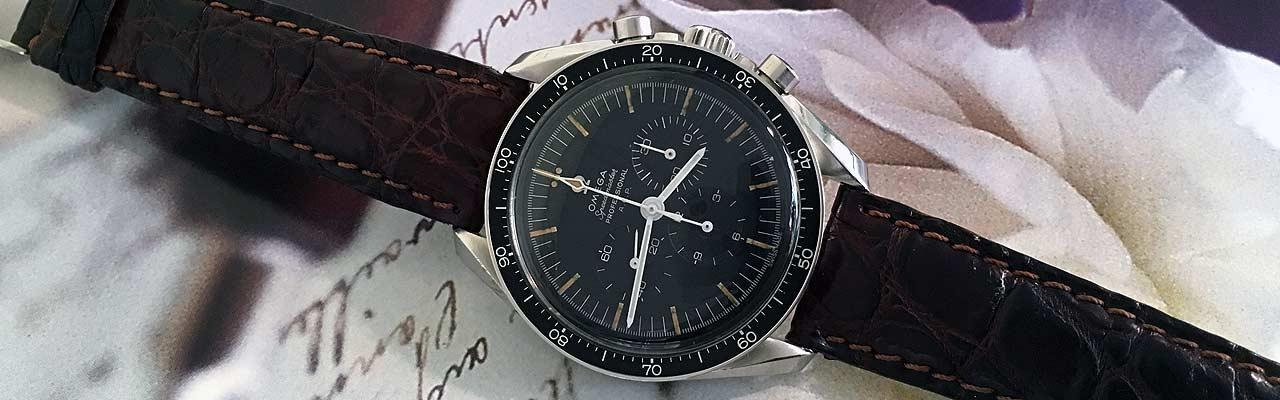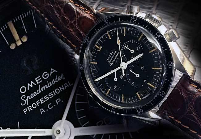 而上圖這款歐米茄超霸A.C.P.計時碼錶則是個更稀有的品項,面盤上的A.C.P.代表Automovil Club Peruano(祕魯汽車俱樂部)的縮寫,這款腕錶有一個謎團,A.C.P.超霸的序號應該是從1963年開始,但一般認為超霸面盤上的PROFESSIONAL字樣是從1966年才開始,然而,A.C.P.超霸卻都有PROFESSIONAL字樣!這引起了很多討論。有趣的是,歐米茄博物館也收藏這款錶,因此面盤基本上太可能是後加的,更增添了神祕感。