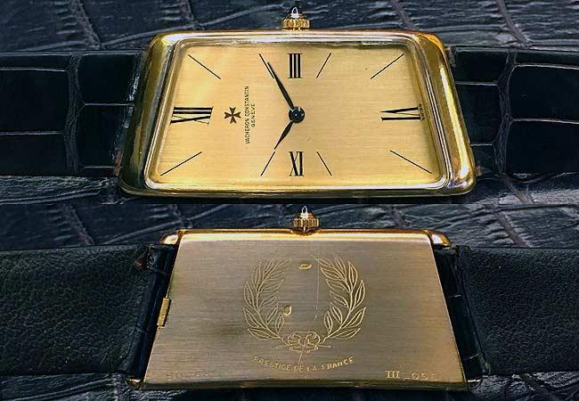 在強悍的IWC工程師之後,葉振東拿起一款外型出格的江詩丹頓腕錶說“1970年代有很多特別的設計!”這是現代江詩丹頓1972錶款的原型,當年法國工業與科學發展部部長頒發給江詩丹頓Diplôme du Prestige de la France(法國榮譽證書)的尊榮,因此設計了這款腕錶作為紀念,腕錶底蓋上銘刻了桂冠紋飾,還有Prestige de la France的字樣。以現代來看,這脫俗的造型一點也不過時,真佩服江詩丹頓的設計功力。