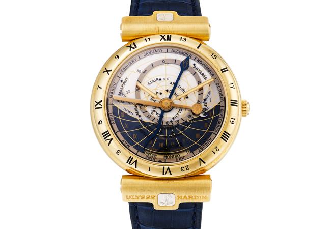 其他附註:直徑40mm 18K黃金錶殼,約1995年製,UN-97自動機芯,時間、月份、星期及日月相對位置、日蝕、月蝕、日出日落、月出月落、星座、星象、真太陽時等天文資訊顯示。