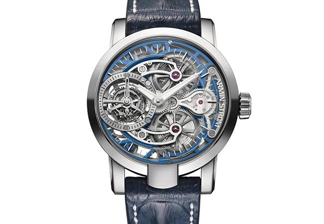Tourbillon Skeleton系列腕錶彰顯了Armin Strom的超高技藝,運用鏤空骨架呈現出機芯整體的機械藝術性,並運用PVD鍍膜的方式為主要部件上色,彰顯鏤空機芯多層次的細膩結構。隨著陀飛輪不斷地在錶盤上旋轉,可以欣賞到雙發條盒的絕美動感畫面。Tourbillon Skeleton系列採用品牌四大特色元素,火(18k玫瑰金)、水(不鏽鋼)、風(鈦金屬)與土(黑色PVD不鏽鋼),搭配不同機芯部件以PVD電鍍處理上色,展現出Tourbillon Skeleton系列腕錶的鏤空美學,向品牌創始者Armin Strom先生致敬。