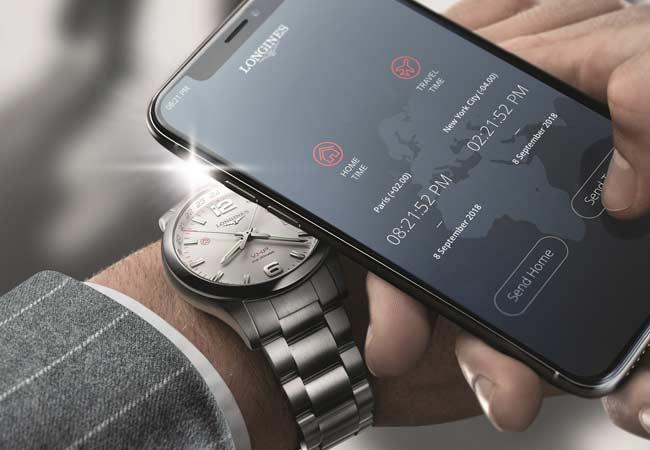 閃光設定功能讓人無需使用錶冠就能迅速直接的設定時間,並提供精準的時間顯示。此系統透過使用者的智慧型手機與Longines浪琴表開發的專屬應用程式,但不需要另外連結WiFi或藍牙。應用程式記錄的資訊是透過手機閃光燈發出的燈光順序,傳輸至隱藏在錶面面盤數字12的微小感光口。「時區切換」功能則提供另一個絕佳好處,使用者只需按壓錶冠就能互換本地時間與旅行時區時間,讓人無論在世界何處都能更輕鬆簡單的判讀時間。