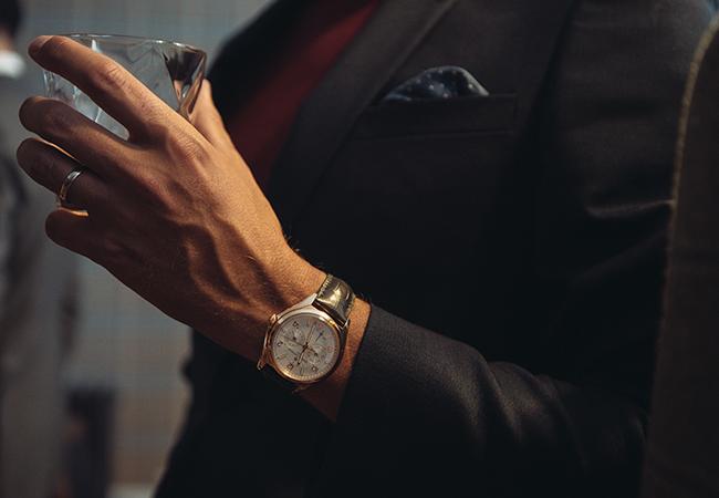 搭配正式的深色西裝,粉紅金色光澤亮眼,在色彩的反差下,會讓視覺更有重點。而當然,設計洗練的貴金屬錶款所帶來的貴氣,永遠是無庸置疑的。若是搭配更現代、設計感更重的混搭正裝,粉紅金版本的Fiftysix也不會顯得突兀。適合偏商務的正式場合。