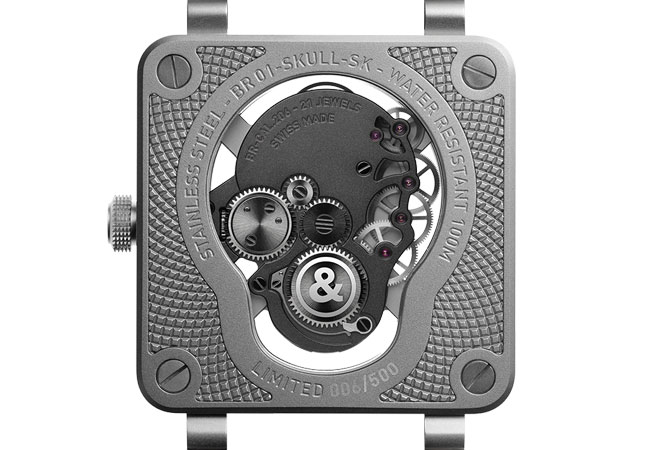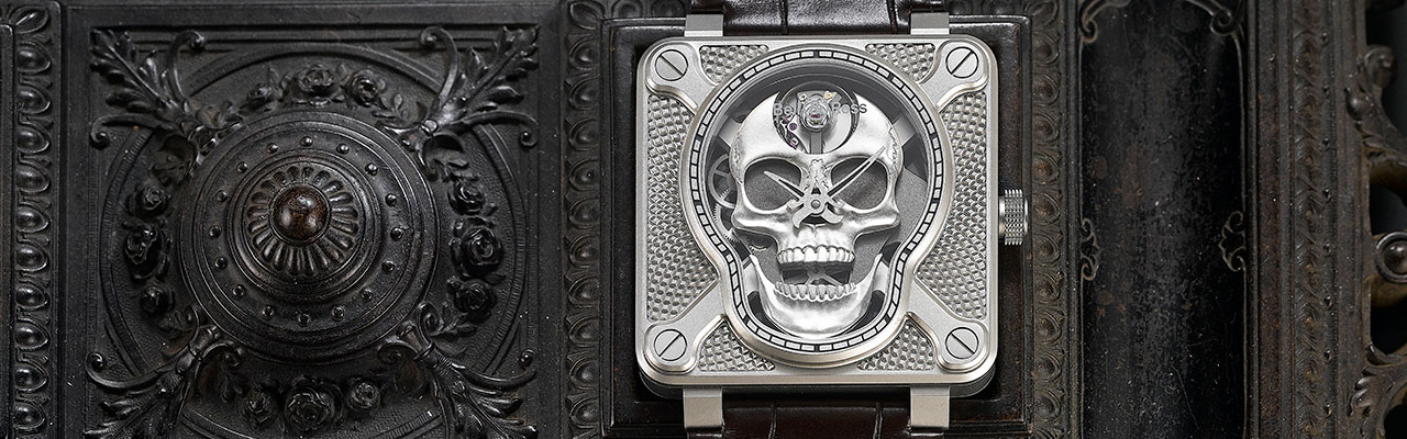 加入骷髏圖騰的BR 01 Skull於2009年問世,最初是以二戰時期美軍空降部隊的圖騰為靈感,將徽章上的骷髏頭以及軍刀標誌化為腕錶的面盤與指針,暗暗訴說著過往的戰鬥歷史,同時也以此傳達因為生命有限,更該珍惜時光的內蘊情懷。」