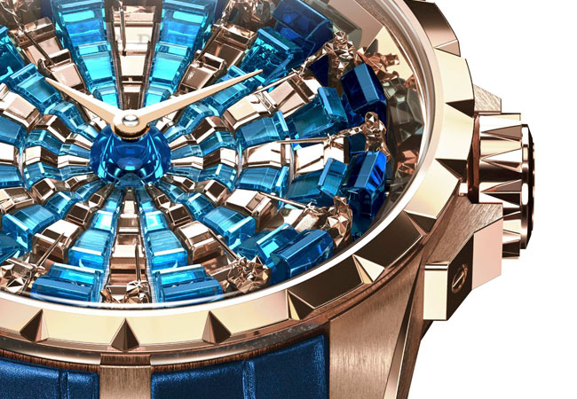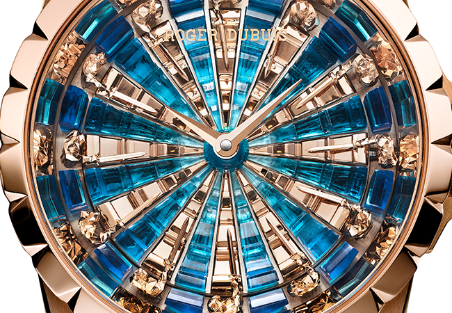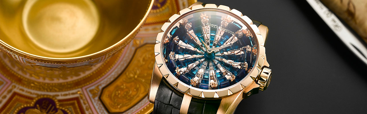 圓桌武士對羅杰杜彼ROGER DUBUIS來說是個地位有點特殊的產品,目前的RD主打的是年輕化的奢華運動錶風格,開面、鏤空、特殊材質或是複合式結構是組成錶款的主要元素,相對地像圓桌武士這種,雖然同樣是奢華,但卻帶有更多古典筆觸的作品放在品牌現在的錶款當中就顯得異常突出;事實上類似的華麗風格頗有當年Carlos Dias時代RD錶款的味道—正好首款圓桌武士推出的那幾年RD有一波恢復Dias風格的動作,然而像金雕人偶這種具象寫實的元素又是當時所沒有的,凡此都讓它成了品牌當中一個相當獨特的存在。