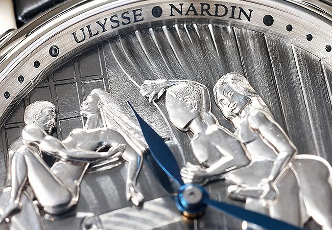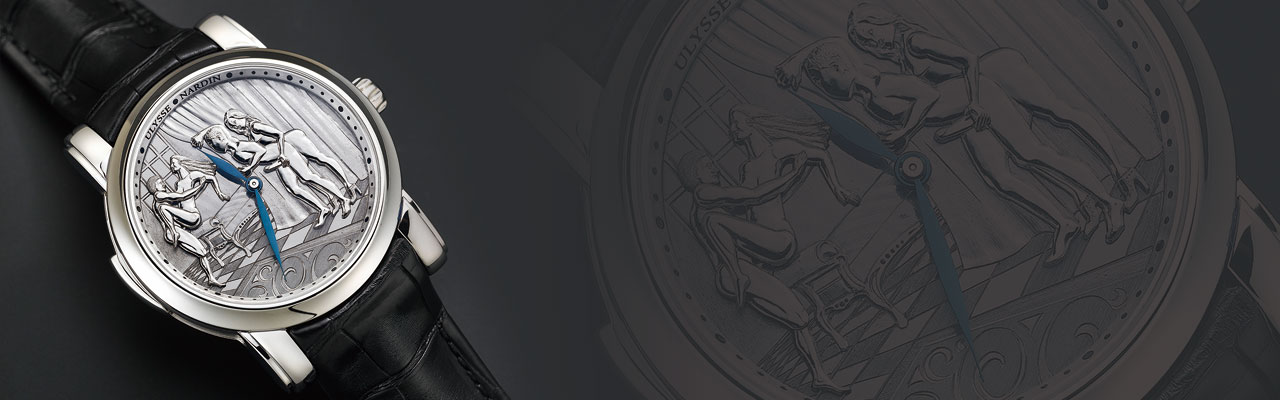 三問動人心弦,春宮圖讓人臉紅心跳。而雅典ULYSSE NARDIN將其整合,還加入活動人偶,影音結合,完成更令人血脈噴張的禁忌藝術,有些腕錶功能不論從哪個角度看,都與日常實用無甚關聯,其意義是在將腕錶時計功能抬升到更玩物、更充滿微機械藝術的心靈意義。雅典ULYSSENARDIN今年發表新款的經典系列窺視者Classic Voyeur腕錶,便以金雕活動人偶三問這樣的複雜功能,展現品牌機械與藝術的雙高峰,這也是雅典第一次春宮活動人偶三問。