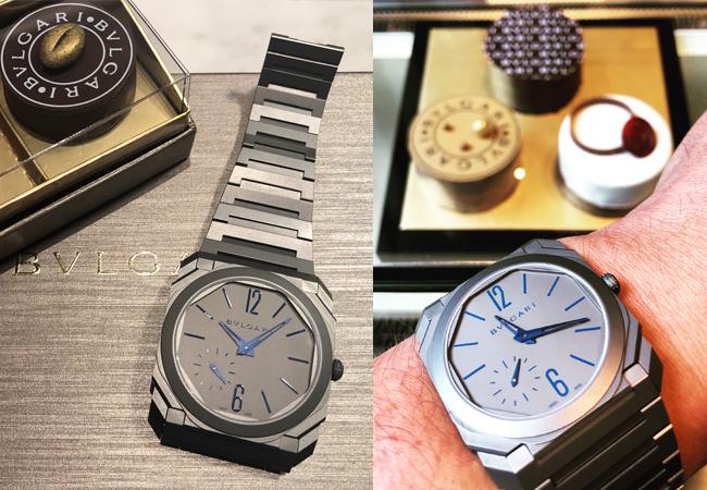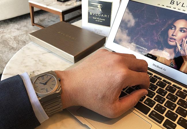 Octo Finissimo其實跟我平常配戴的錶差異極大,我多半配戴44mm以上帶有厚度的運動錶,所以當Octo Finissimo戴在我手腕上的第一個感覺,就是很輕,當然,它是鈦合金錶殼,輕盈這件事本來就很合理,但別忘了,它是現下最薄的自動上鍊腕錶,這更讓它在我手上感受到:簡直輕到一個不合理!當我在生活移動的過程中,最常得問自己的就是「我的錶還在吧?」、「錶沒忘記丟在哪裡吧?」甚至因為太輕而不夠真實,得翻到背面,提醒自己,它是一只具備微型自動盤的高級機械錶。