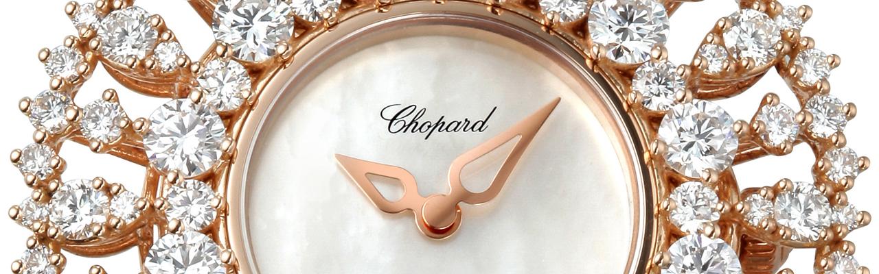 凝聚蕭邦工作坊頂級技藝,再次展現品牌精湛的製錶與珠寶工藝。鑽石完美堅硬的純淨質地,細緻的鑲嵌工藝和美學設計,讓光影折射出耀眼無比的光芒。匯集30多種工藝,耗費數百個工時,使不同技藝間的流暢銜接和相輔相成成為可能。蕭邦以深受歡迎的L'Heure Du Dimant鑽錶,同樣以花卉造型為靈感設計,錶圈層層發散狀的鑲鑽設計,18K玫瑰金鑲嵌總重0.21克拉水滴形切割鑽石,圓形明亮式切割鑽石4.35克拉,配上珍珠母貝錶盤,呈現既清新而又高貴洗鍊之華麗風格。
