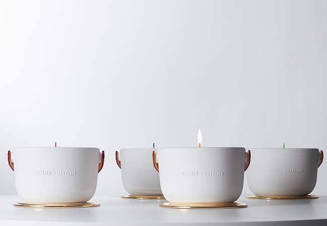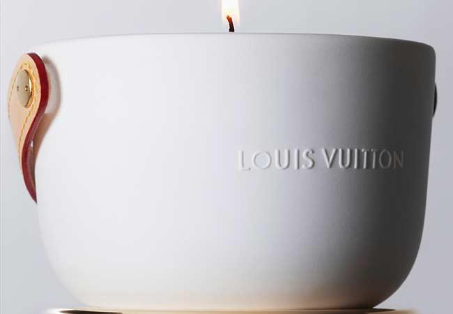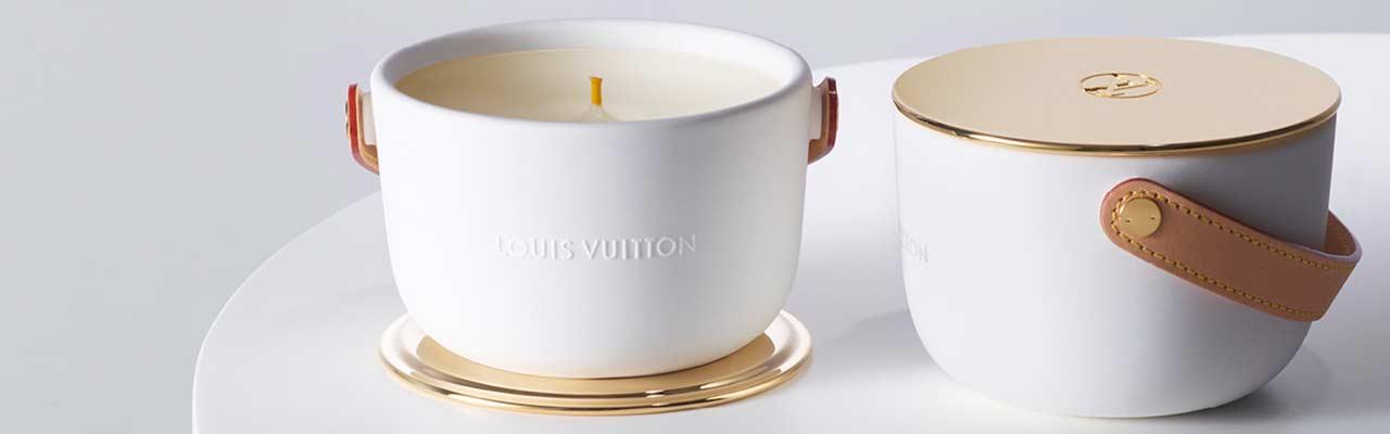 「馬不停蹄」可說是貫徹路易威登品牌的靈感來源,包括第一款行李箱到成衣與香氛產品。Marc Newson秉持這樣的概念,為路易威登設計第一款香氛蠟燭容器。這些容器採用手工製作的陶瓷鑄造而成,具有獨特的形體。並採用象徵品牌的天然皮革材質來製作提把,目的在於方便攜帶。而手工縫製的提把以金屬鉚釘固定於瓷器。若要踏上香氛之旅,取下金色飾面的金屬上蓋,置於蠟燭下方即可作為底座。點燃蠟燭,讓嗅覺踏上享受香氣的旅程。在法國格拉斯所注入的香氛蠟燭亦有色彩方面的巧思:燭芯是在格拉斯經過手工仔細上色的處理,選色均十分活潑。蠟的純淨、消光白色飾面與金色底座的閃光形成鮮明對比,天然皮革提把的質感則讓香氛蠟燭多了溫暖的感覺。彷彿到異國旅行而帶走充滿難忘回憶的紀念品,路易威登香氛瓷器蠟燭的設計目的就是能與居室環境完美融合。