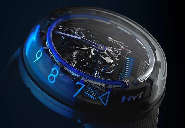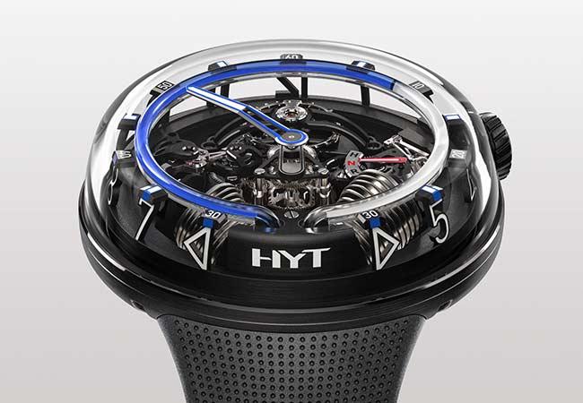 雕塑能夠傳達豐富的涵義。HYT最新力作H20腕表便借助了這種視覺藝術形式,通過三維立體構造清晰展現時間的本質。這一宛若雕塑般的腕表無論從哪個角度看都揭示了時間的不同維度,而有色和透明液體則將時間最本質的“流逝”特性即時呈現,永不斷流。伴隨著一秒接一秒地流逝,一層又一層的時間被揭示、見證、期待。全黑配色方式——連機芯的板橋也採用了黑色鍍層——更增強了既神秘又透明的視覺反差。這種時間與空間的內在交互栩栩如生地映射了HYT的核心理念:時間由“內在實質”與“外部環境”共同定義。