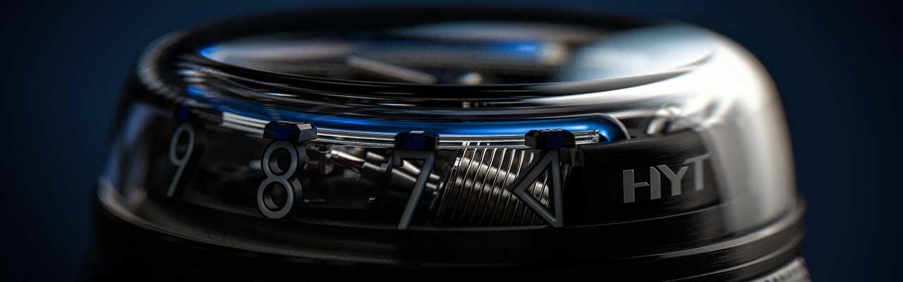 在H20的重重安全“壁壘”內,先進技術性能精彩上演。主要是專利流體模組以及由APRP專門為HYT獨家研製的機械機芯共同挑起性能大樑。這兩大“主角”之間的順暢傳輸得益於能夠將旋轉運動轉換成線性運動的凸輪從動系統。通過對時間本質的終極探尋,該腕表實現了對時間的精准定義。結論清晰鮮明:時間即當下——始終如是。