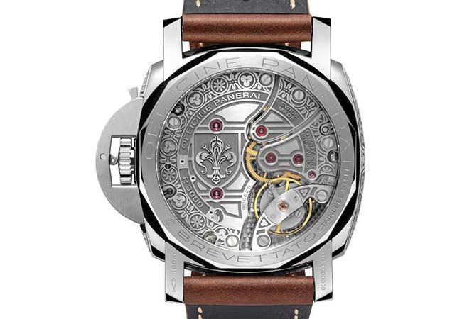 全新LUMINOR 腕錶彌足珍貴,只供歷史悠久的佛羅倫斯專門店顧客選購,向沛納海的發源地致敬。錶殼以人手 精雕細琢,機芯綴以佛羅倫斯經典圖案。