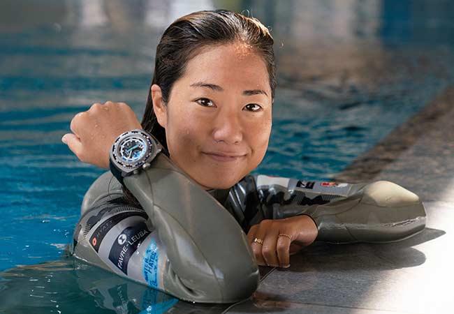 Favre-Leuba域峰再創巔峰,這次推出可以測量水深的Raider Bathy 120 MemoDepth深度記憶潛水錶,向1968年域峰Bathy腕錶致敬。日前找來以97米成績創下自由潛水世界記錄的日本潛水好手──木下紗佑里蒞臨現場,親身下水體驗Bathy腕錶帶來的完善功能與專業性。
