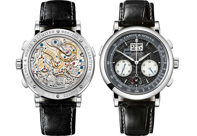 Datograph Up/Down “Lumen”乃朗格於2010年推出之“Lumen”系列的第四款腕錶。 半透明藍寶石水晶玻璃錶盤上的特製塗層可過濾大部分可見光,並只容許紫外光譜中能為夜光物料補充光能的光線穿過。 周遭環境越黑暗,各項顯示與錶盤深色背景的對比則越為鮮明。1999年,朗格推出DATOGRAPH,奠定了計時碼表設計的新基準。 其飛返功能可連續計時:按下4時位置的按鈕,即可停止計時,並立即開始新的計時。 如此功能實屬罕有,只需按一下按鈕,飛返裝置便進行掣停、歸零、重新開始三個所需步驟,因而可節省時間。