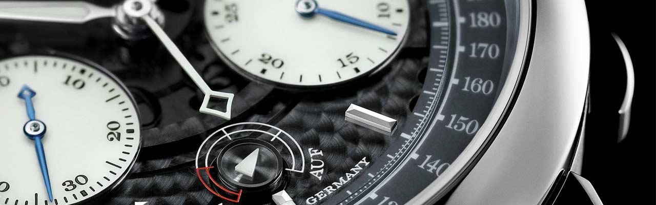 腕錶擁有半透明錶盤和夜光物料,使所有顯示皆於黑暗中發出獨特而格外悅目的綠光。 時針和分針皆含有夜光物料,而中央計時秒針更完全覆有同樣物料。 此外,小錶盤上運行的秒針和積分盤以藍鋼製成,並同為夜光設計。 外圍錶盤環的分鐘刻度以五分之一秒為間隔,同心的計速刻度和動力儲存箭頭嵌塊刻度亦散發綠光。