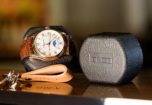 在這裡有幾個細節要強調,首先就是位於上方的四個上鍊轉座,BOXY在設計上亦有些小巧思。比如在轉座底部上留下了足夠的空間讓錶帶能夠容納擺放,避免轉動過程中對錶帶造成摩擦刮傷;另一方面,轉座上的錶枕設計也很貼心,從不同長度的邊線就可以看出有兩種擺放方式,不同的方式可以裝上不同錶帶長度的腕錶,橫放適合較小的腕錶;直放則適合較大的腕錶,這讓實際使用上多了更好的機動性。