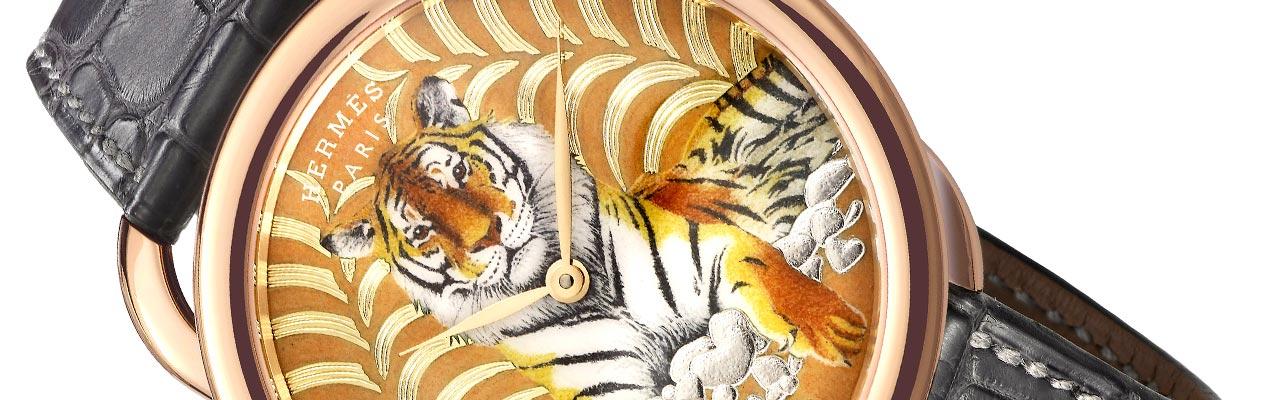 愛馬仕Arceau Tigre Royal“王者之虎” 琺瑯與金雕工藝腕錶