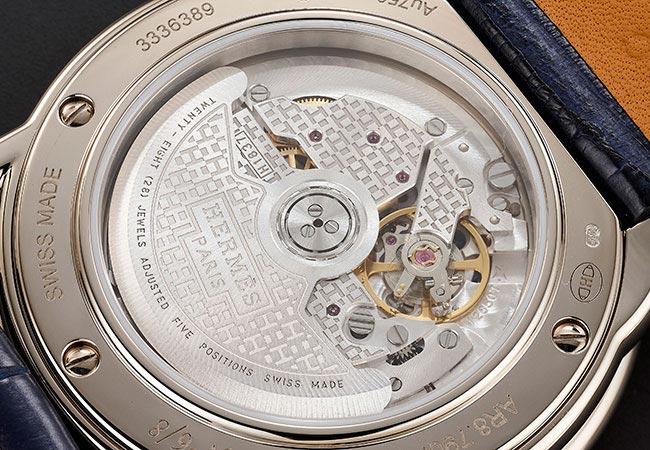 承襲Arceau系列的血統,款式的錶殼是發想自馬具,上下不對稱的錶耳設計。其中上錶耳的造型類似線型樣式;下錶耳則幾乎要藏到錶殼底下,這種殼型幾乎佔據了愛馬仕發展高級製錶以來的黃金時期,對於品牌愛好者來說,自有一番特別意義。而錶款內部搭載的機芯則是H1837,這是愛馬仕第一批正式發表的機芯,從取自創始年份而來的名字,就可見其不凡地位。它由Vaucher錶廠打造,直徑是現代最常見的11-1/2法分,具時、分功能,動力儲存為50小時。錶背透過透明底蓋,亦可欣賞到機芯律動。除了在機板上具有細緻打磨的珍珠圓點紋外,自動盤上也遍佈了代表愛馬仕的H字母鐫刻。