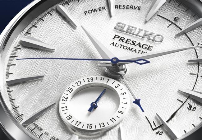 此次以「冬之景」為靈感釀製的錶款共有三種不同款式:以男女對錶型式呈現的SRPC97J1及SRP843J1搭載了4R35機芯,簡約的三針設計展現錶款俐落氣質,是SEIKO Presage的不敗經典;另一款SSA385J1則使用附加動力儲存顯示功能的4R57機芯。三款腕錶均採用「曲げ針」技術(曲針技術),由經驗豐富的職人以手工彎曲的方式打造,完美服貼於面盤的指針劃過如高腳杯般纖細的長錐形時標,提升整體視讀性。