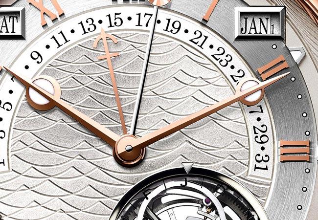 這次正泰鐘錶所推薦的,是寶璣的5887 Marine 時間等式萬年曆陀飛輪,這只腕錶,不只是品牌高端複雜功能技術的表現,面盤的波浪紋、發條盒上的羅盤圖騰、錶背精雕的法國皇家海軍戰艦--「路易士皇家號」(Royal Louis)等設計,都是向寶璣大師曾被法皇路易18點為「法國皇家海軍御用精密時計製造商」的輝煌過往致意。