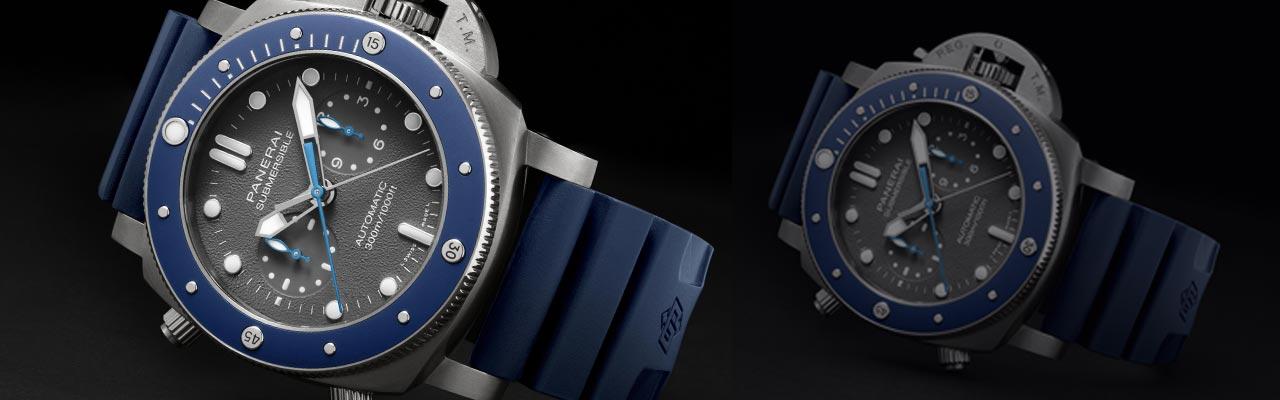 錶底蓋鐫刻自由潛水王者本人的署名,及他創下的驚人紀錄 —— 一口氣下潛126米。腕錶設計迷人輕巧,鈦金屬錶殼完美融合鑲嵌在錶圈上的藍色陶瓷轉盤、藍色指針及橡膠錶帶。這枚精準無比的計時腕錶配備飛返計時和秒針歸零功能,確保腕錶與參考時間訊號完美同步。沛納海Submersible專業潛水計時腕錶 –Guillaume Néry版搭載P.9100自動機芯, 動力儲存長達三天。機芯全由沛納海諾沙泰爾 高級製錶廠的創意實驗室 (Laboratorio di Idee) 研發自製,讓沛納海腕錶的原創性和準確度為每款設計注入不屈不撓的個性,淬煉成技術性能卓爾不凡的傑作。
