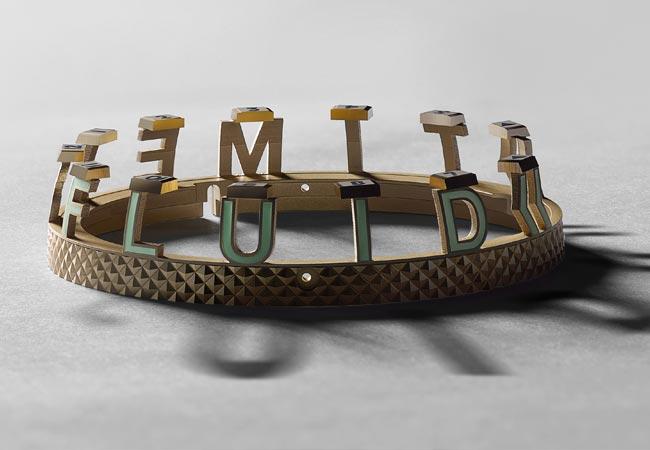 無論從技術上還是理念上,H20 »TIME IS FLUID« 腕表都在看似互相矛盾的存在之間搭建起連接的橋樑。工藝和技術之間的創意拉扯成為“專利微型流體模組 + 特製APRP機械機芯”這一創意組合之助推動力。乍看上去,分鐘和秒鐘盤以及主夾板上的鑽石形紋飾並不是“高級鐘錶”的特徵。但近距離觀察,會發現盤上的圖案呈偏心狀分佈。這樣便突顯出不同時間單位的不同節奏和層次感,也區分出調節用的波紋管所代表的動力源。