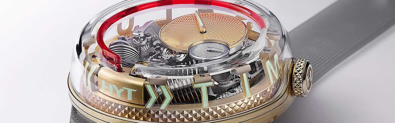 H20鮮明體現出HYT的基本設計語彙。順滑的彎角、流暢的造型,且幾乎沒有直線條——這些都演繹出時間的流動特性。其核心訊息是“平衡”,即:傳承與創新之間的平衡、冷與暖之間的平衡,以及碰撞於當下的、過去與未來之間的平衡。H20 »TIME IS FLUID«腕表有兩個表款可選:一款由18K黃金 (2N) 打造,另一款為不鏽鋼材質。兩款均為限量發行。有色與透明液體分別展現過去的和即將到來的時間軌跡,堪稱生命的極致象徵——屬於您自己的獨特生命軌跡。