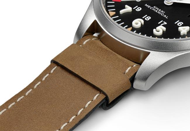 漢米爾頓挑選磅數高、快乾、耐磨的卡其帆布,作為取代皮革與鋼料錶帶的選擇,第一批5000只試作版本,獲得第一線士官兵一致肯定,卡其帆布錶帶不僅服貼快乾,在槍彈四射的戰場上,帆布錶帶不需拆卸錶耳彈簧棒,士兵們可以直接抽出錶帶,進行傷口包紮止血與固定患部的功能面向,令士兵們備感舒適與便利,透過全面性的換發,奠定軍用北約NATO錶帶在軍錶歷史的經典定位。漢米爾頓陸戰卡其50mm越戰紀念款,處處滿足軍事迷與軍錶控的經典堅持,特別透過新世代的雷射切割技術,將皮革薄切至2mm,保留NATO的軟韌與服貼的配戴觸感,展現出時代經典與現代工藝的完美結合。
