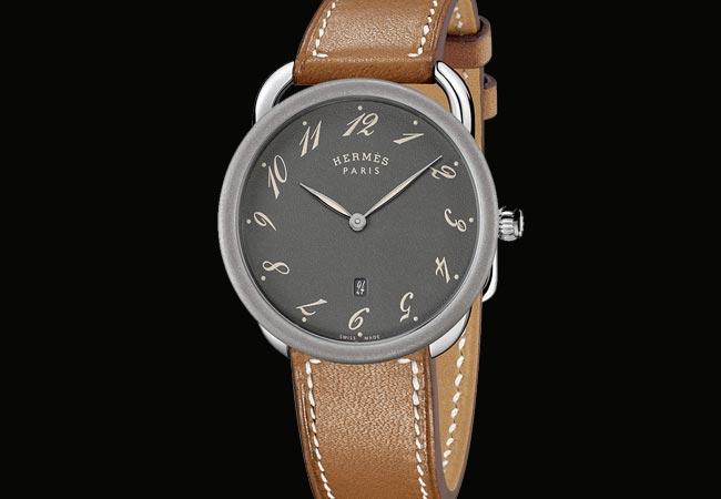 這款直徑40毫米的精鋼材質腕錶,選擇了炭黑色粒紋錶盤、乳黃色時標和指針,搭配原色Barénia 小牛皮錶帶。自誕生以來,愛馬仕Arceau 系列腕錶就展現出與眾不同的風格氣質,而這主要得益於其低調簡約的設計和簡潔優雅的線條。
