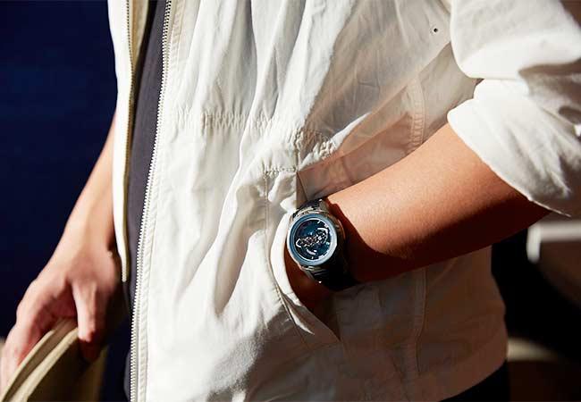 接著還讓他發現了雅典錶的活動人偶三問腕錶,很快地被複雜功能、精緻打磨的機芯以及饒富趣味的活動人偶深深吸引,這也是未來入手錶款的口袋名單之一。小編本以為Frank只喜歡前衛的錶款,他則補充說「我喜歡獨特的錶,不管是前衛還是傳統功能。三問動偶錶款雖然很早就有,但不論在什麼時代,這都是非常特別的。」