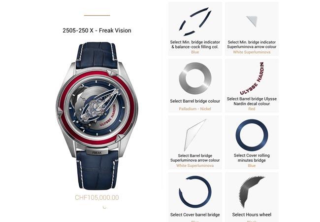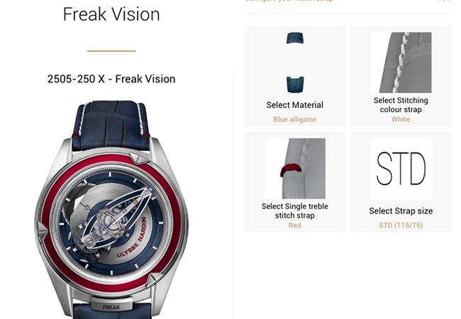 錶殼鎖釦和錶側編號牌可供雷射雕刻:可以是你的姓名、簽名、代碼、或是一生的摯愛。再點擊一下,就可以直接下單,4個月後,你私人定製的手工裝配傑作即可呈現於眼前。“這款FreakIT app應用程式將個性化定製發揮到極致,”Ulysse Nardin雅典錶行政總裁Patrick Pruniaux指出:“在鐘錶產業,這是前所未有的。目前在定製服務方面,鐘錶產業遠遠落後於汽車業,勞斯萊斯(Rolls Royce)、法拉利(Ferrari)和賓利(Bentley)等品牌都為顧客提供全套定製服務。
