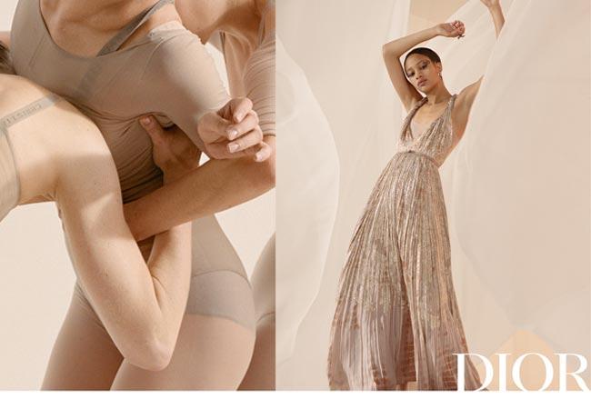 DIOR 發表 2019 春夏時裝系列形象廣告,創意總監 Maria Grazia Chiuri 表示:「我的工作是透過服裝禮讚體態美,以及塑造自我在別人面前及自己眼中的形象。」英國女攝影師 Harley Weir 拍攝的影像被無限漸變的裸色調籠罩,忠實再現 Maria Grazia Chiuri 賦予本系列的輕盈感與現代風情。曾為本系列大秀編排舞蹈的 Sharon Eyal 在本次形象廣告拍攝巧妙玩味光影效果,令模特兒的身姿更顯靈動嬌柔。