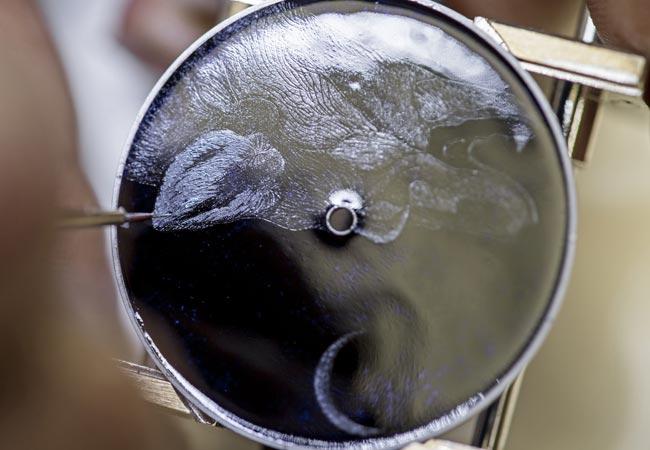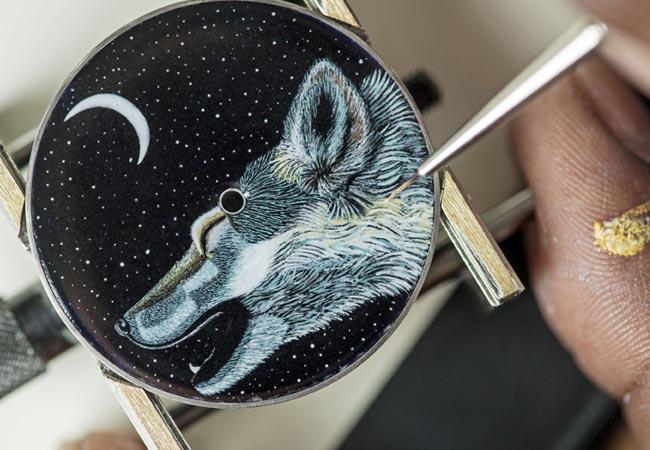 工匠首先製作出雙面透白的琺瑯錶盤,精心拋光令表面達到完美平滑,然後以極細的筆刷蘸取各種琺瑯細粉和油混合調配而成的顏料勾勒圖案輪廓。接下來經過連續的上色工序,包括反覆多次乾燥和燒製過程,最終圖案才得以完美呈現在我們眼前。
