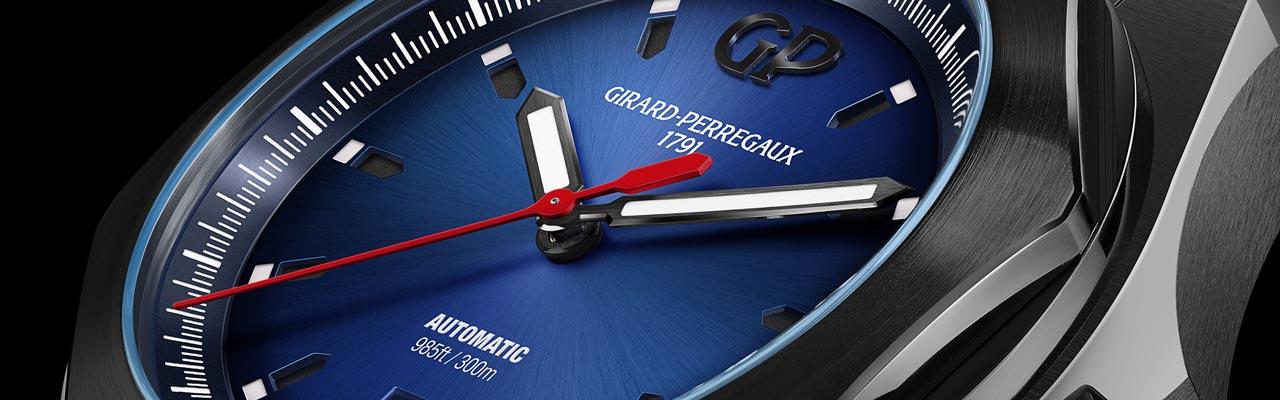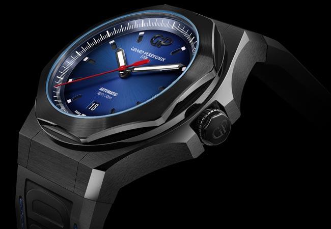 Laureato桂冠系列載譽回歸後,GP芝柏表重新演繹這標誌性系列,注入更具時尚動感的元素。Laureato桂冠系列Absolute腕表採用尺寸更大的表殼,配合更緊緻的線條,彰顯品牌專業及完美的制表工藝。嶄新的結構,黑色 PVD 鈦金屬表殼,綴以鐵藍色的表圈,防水深度提升至300米。