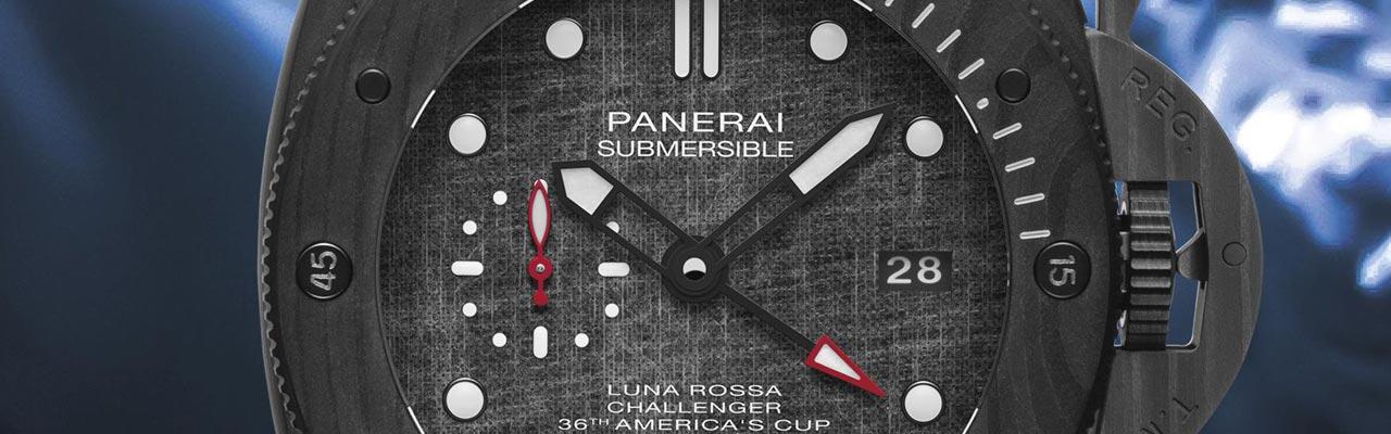 意大利船隊LUNA ROSSA將率先在第36屆美洲盃帆船賽裡挑戰衛冕團隊, 沛納海PANERAI將為其創製全新專屬腕錶系列。SUBMERSIBLE LUNA ROSSA專業潛水腕錶PAM01039,是首枚奠基於品牌與第36屆美洲盃帆船賽的紀錄挑戰者Luna Rossa 船隊的合作策略的沛納海腕錶。這枚潛水腕錶的防水深度達300米 (30巴),錶殼採用carbotech鑄造,該款 嶄新物料由沛納海率先引入高級製錶界,以碳纖維為基礎成分,質感無比輕盈,可抵禦外來衝擊和防止磨蝕。
