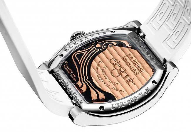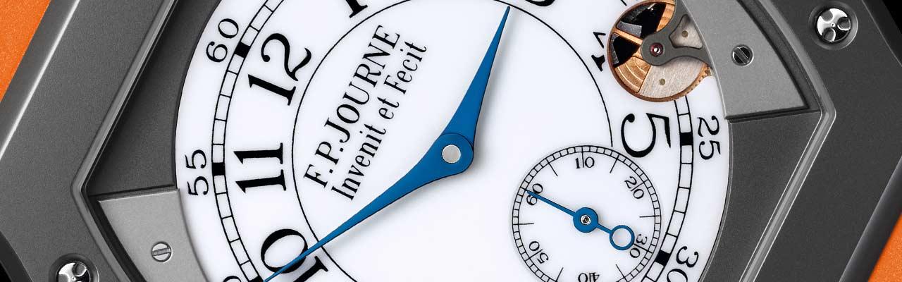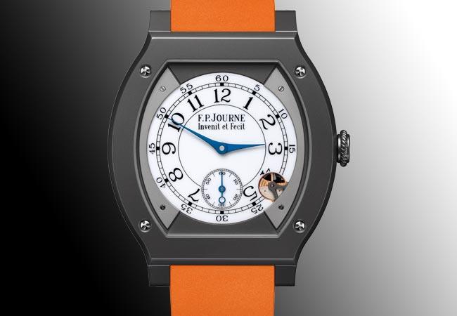 腕表更備有40毫米和48毫米兩種版本,滿足不同喜好。élégante by F.P.Journe鈦金屬款式搭配夜光表盤: 白天的時候,表盤在陽光下反射出白色珍珠母貝般的耀眼光彩。晚上,當指針在夜光表盤上劃過小時數字,佩戴者可如欣賞皮影戲般,在黑暗中清晰地讀取時間。F.P.Journe花了八年時間來研發這枚饒富革新意念的機芯,成就一枚精確、創新,而且佩戴舒適的腕表。
