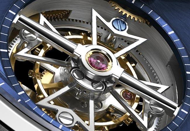 2160超薄機芯於2018年正式問世,共擁有188個零部件,厚度僅5.65毫米。除了優雅的馬耳他十字形鏤雕陀飛輪框架外,還特意選配22K金質邊緣式擺陀。機芯以2.5赫茲的頻率確保走時的精準度,透過透明藍寶石水晶錶底蓋可欣賞其全貌,以及品牌引以為傲的非凡打磨修飾工藝。陀飛輪框架橫杆以全手工打磨倒角,僅這一項操作就需耗時約12小時。全新Overseas陀飛輪腕錶設有中央時針和分針,而帶有小秒針的陀飛輪則位於6點鐘位置,覆有Super-LumiNova®夜光塗層的指針和時標,另藍色漆面的旭日紋緞面拉絲錶盤為腕錶添加生氣。