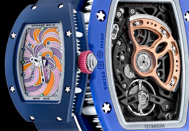 RICHARD MILLE Bonbon系列腕錶在呈獻大膽先鋒造型的同時,還忠實延承了之前款式的特點。首先是顏色:品牌正不斷拓展其色彩的疆域。多種材質的運用逐漸成為品牌特色,乃至獨家專有的技藝;品牌得以定期推出綠色、酒紅色、黃色或粉紅色的腕錶設計。