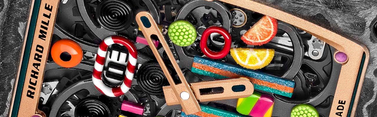 棉花糖的綿軟,奶油的絲滑。水果糖和棒棒糖的香脆口感。灑在柑橘上的鮮酸糖果碎粒。RICHARD MILLE將精湛的材質技術與糖果主題合二為一,打造出一個可口、豐盛且令人浮想聯翩的腕錶系列。不論是Sweets還是Fruits表款,RICHARD MILLE Bonbon系列都能令您垂涎欲滴。這是製錶工藝獻給您的美味承諾。