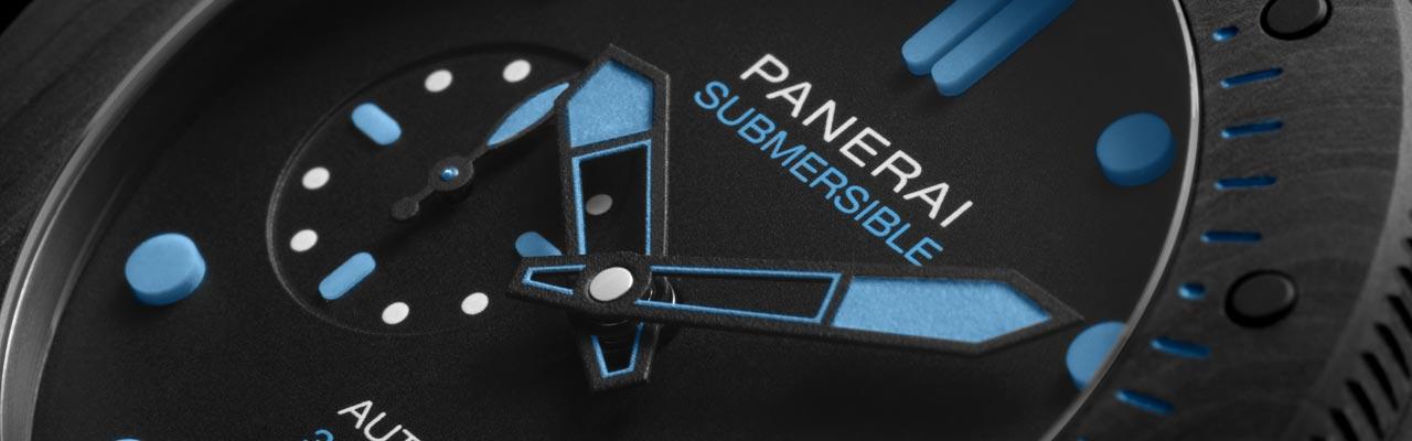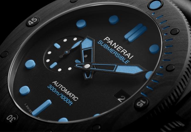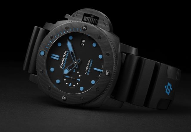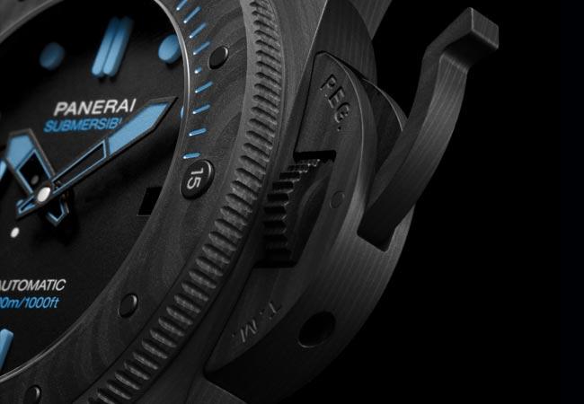 兩款全新沛納海Submersible CarbotechTM腕錶,防水性能均達300米 (30巴),並配備旋轉錶框,精確計算每次下潛時間。 以碳纖維為基礎成分的carbotech物料,呈現獨特出眾的條紋,令腕錶的全黑造型更顯硬朗奪目。錶盤同樣選用黑色,小時刻度採用Super-LumiNova®強力夜光塗層,確保於光線充足的正常環境及漆黑水底當中,仍然極致 清晰可讀。