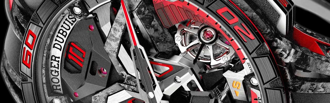極度精密複雜的Excalibur One- Off腕錶在Roger Dubuis羅杰杜彼與Lamborghini Squadra Corse藍寶堅尼賽車部門以及Pirelli倍耐力的攜手合作下誕生,其創作靈感來自Lamborghini藍寶堅尼最新推出的SC18 Alston超級跑車,此為Lamborghini藍寶堅尼賽車部門首次專為個別客戶以消遣目的在賽道上馳騁所研發創造的絕世超跑。充滿未來風格的Excalibur One- Off腕錶的設計概念以當代藝術與創新建築相稱,並搭載著一枚猶如複雜引擎的機芯。這款獨樹一幟的「超級盛裝」腕錶以豐富多樣的材質製成,真正體現了由高級製錶師、超級跑車製造商和輪胎之王所共創的登峰造極之境。