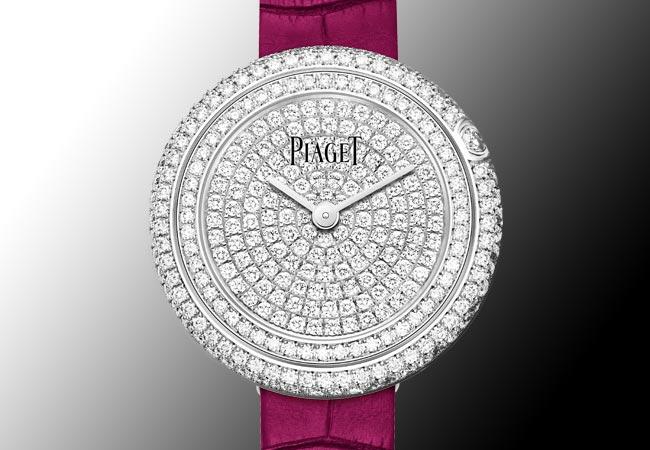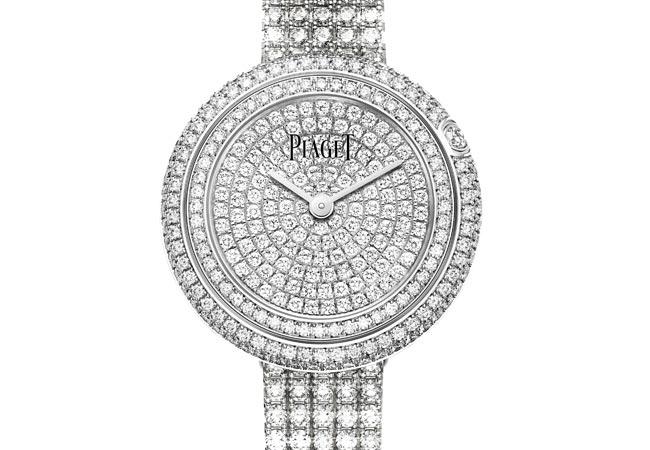 另兩款伯爵Possession腕錶為白金材質,錶殼與錶盤均採用密鑲裝飾,出眾的珠寶精工與嚴苛的寶石選材創造熠熠生輝的純粹奢華質感。其中一款高級珠寶腕錶的白金錶盤與錶殼鑲滿寶石,嵌于同樣鑲滿鑽石的手鐲,將這種罕見其匹的精雅品味體現得淋漓盡致。以手工鑽石密鑲方式打造的手鐲式錶帶因富有流動感的迷人閃光而贏得“鑽石流川”的美名,為伯爵特色設計。