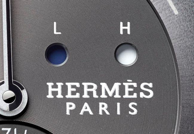 再說這只款式還採用目前已經追過鉑金直逼黃金,正當紅的鈀金材質打造,加上愛馬仕設計的獨特時尚語彙,競爭力不容小覷。Slim d'Hermès GMT腕錶以岩灰色面盤搭配法國字體設計師Philippe Apeloig為系列量身打造的時標字體展現理性簡約風格。面盤6點鐘設置日期盤、10點鐘方位則裝置獨特設計的第二時區顯示盤。